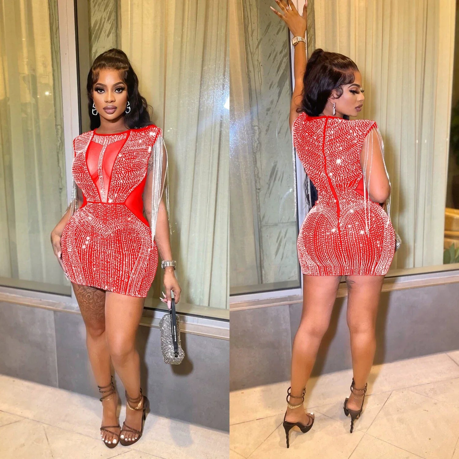 Embrace the night with confidence and style in the Luxury Mesh Sheer Patchwork Sparkly Night Club Dress. Be it a grand entrance or just a night to dance away, this dress promises to deliver an unforgettable experience. Pair it with your favorite heels and accessories for the ultimate dazzling look.